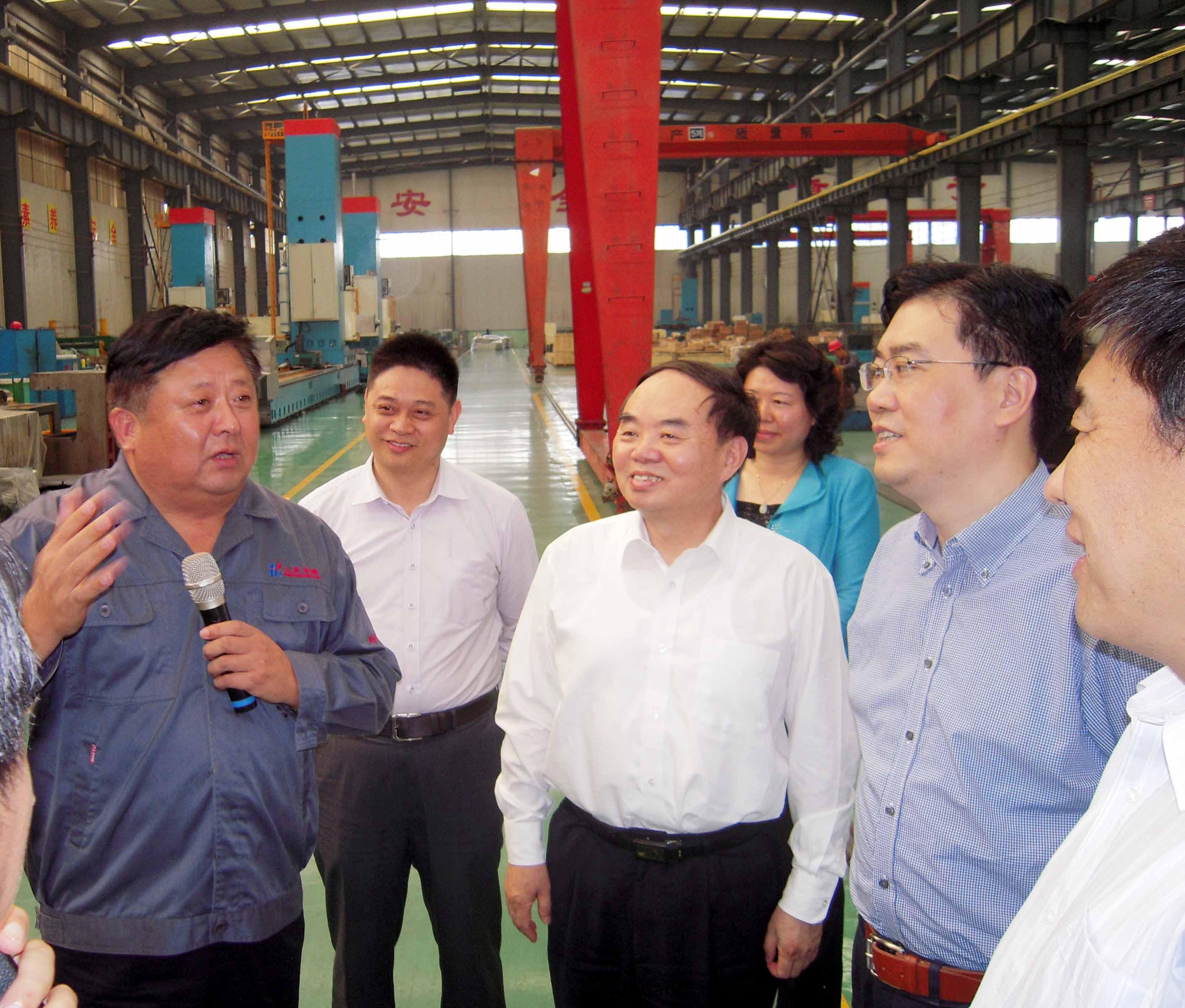 圖爲中國工程院院長週濟(右二)在宏康現(xian)場。